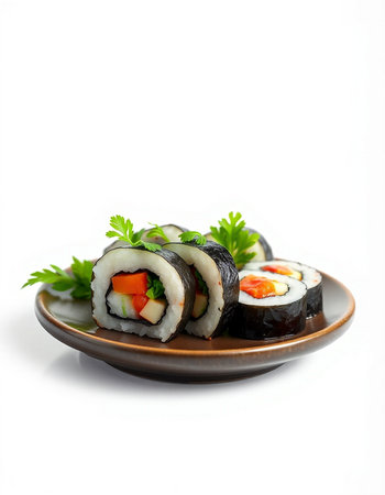 Sushi rolls on a plate isolated on a white background. Japanese food.