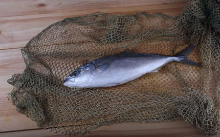 Japanese amberjack fish on net