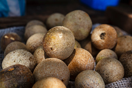 Closeup of wood apples on a market in Sri Lanka, Asia