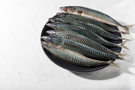 Fresh mackerel fish on a white background, close-up