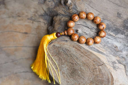 Praying beads on the wooden ground