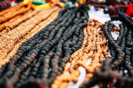Varanasi India November 10, 2018 View of traditional jewelry, bracelet and necklace sold in the streets of Varanasi in the afternoon
