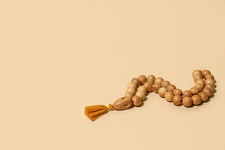Prayer beads for Ramadan on beige background