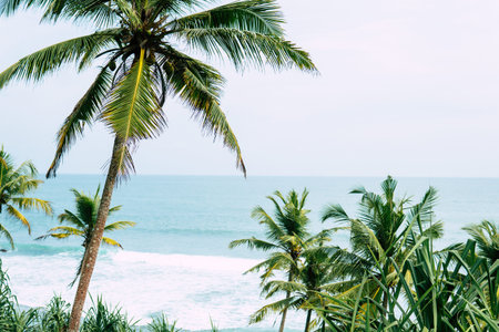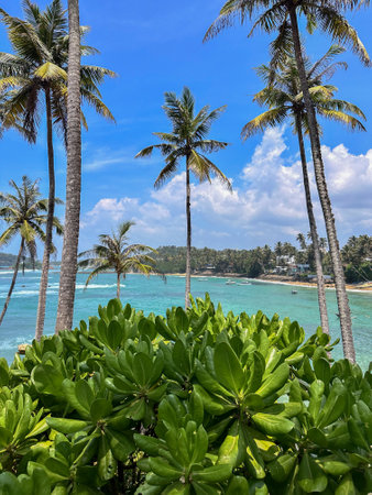 Beautiful view of the tropical beach of Sri Lanka on a sunny day