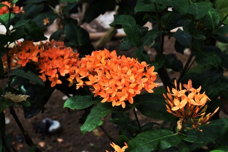 The beauty of the Chinese ixora flower in full bloom. This plant has the scientific name Ixora chinensis.