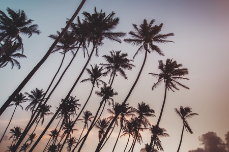 Coconut palm trees with blue sky background - vintage filter effect