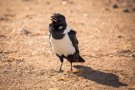 Pied Crow - Corvus albus, large black and white crow from African woodlands and gardens, Simien mountains, Ethiopia.
