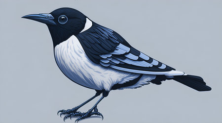 A looking for a cartoonish style drawing of a magpie, AI Generative Illustration