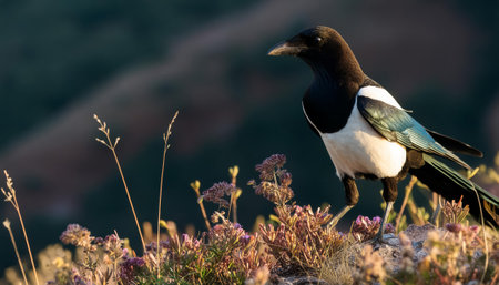 Eurasian Magpie in its natural environment, generated by AI. High quality photo