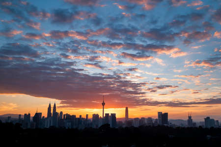 KUALA LUMPUR, MALAYSIA - SEPTEMBER 22, 2018: Colorful and dramatic sky during golden hours at Kuala Lumpur, Malaysia.