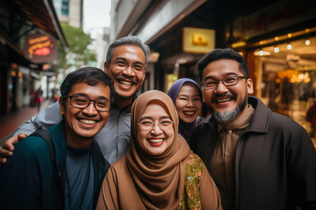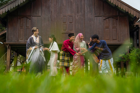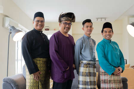 Eid Mubarak celebration concept, group photo of Malaysian wearing traditional clothes
