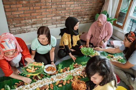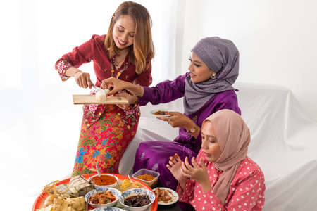 woman greeting each others that invited for the celebration of Hari Raya. They are all excited to enjoy the festivity for the day.