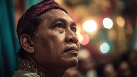 Candid shot of a person attending a religious service, the expression on their face full of reverence and devotion