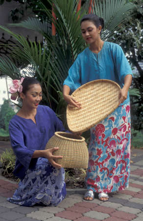 Women in traditional malay dress in the city of Kuala Lumpur in Malaysia. Malaysia, Kuala Lumpur, August, 1997