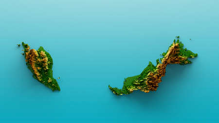 Malaysia Map Shaded relief Color Height map on the sea Blue Background 3d illustration