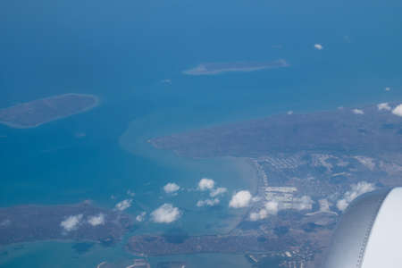 Small tropical islands aerial view from airplane
