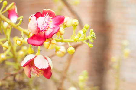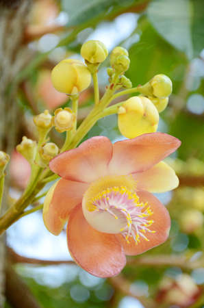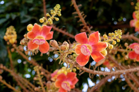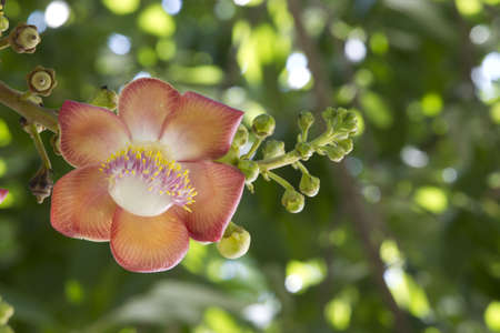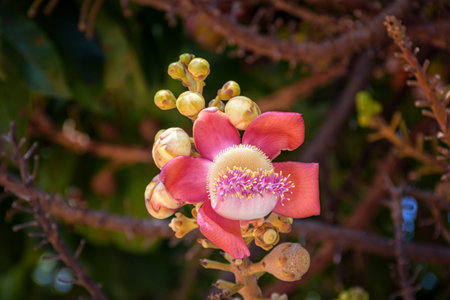 Cannonball tree Couroupita guianensis Aubl with beautiful and fragrance flowers