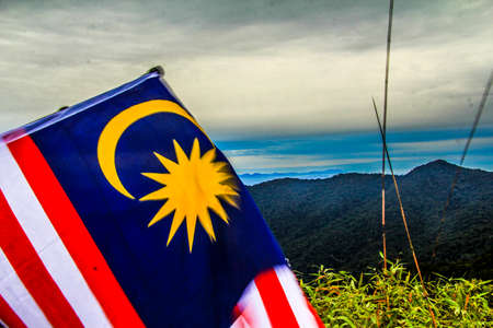 Hand waving Malaysia flag also known as Jalur Gemilang in conjunction with the Independence Day celebration or Merdeka Day.