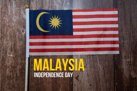 - dark picture of Malaysia flag with big folds on old wood with free space for content