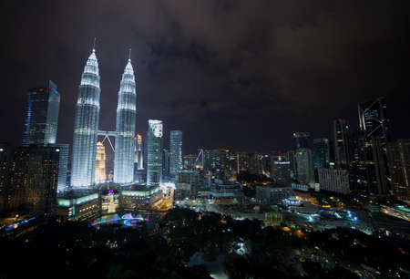 Kuala Lumpur, Malaysia - February 13, 2017: Night illumination of Petronas twin towers in Kuala Lumpur, Malaysia