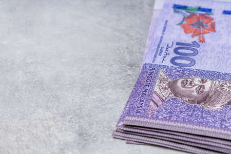 Large File of Malaysian Money, Hundred Ringgit Banknotes, Economic and business concept, background with space for text