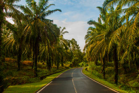 Road with palm trees. Malaysia, Borneo, Sabah.