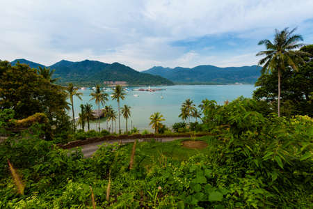 Summer landscape on tropical koh Chang island in Thailand. Landscape taken from Bang Bao beach.