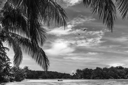 Black White Point Hauru Palm Trees Islands Water Moorea Tahiti French Polynesia.