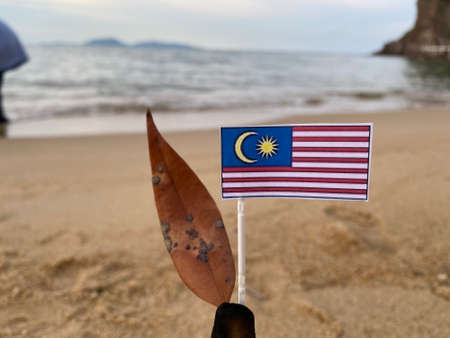 MYGIG123RF - Malaysia flag on the sandy beach. Malaysia Day! My proud My love!