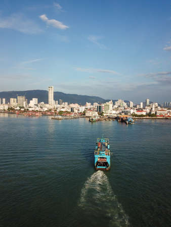 Georgetown, Penang/Malaysia - Feb 28 2020: Ferry cruise at sea toward Penang Island.