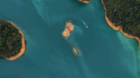 bird flight. top view. Coastal And Oceanic Landforms. Water Resources. Watercourse. Geological Phenomenon. Nature Reserve. Island. Rocks off the coast of the ocean. Coastal And Oceanic Landforms. Water Resources. Watercourse. Guadalest reservoir on a sunny summer morning. bird