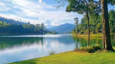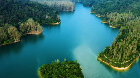 Green lake and rainforest tropical trees in Kuala Kubu Bharu, Malaysia.