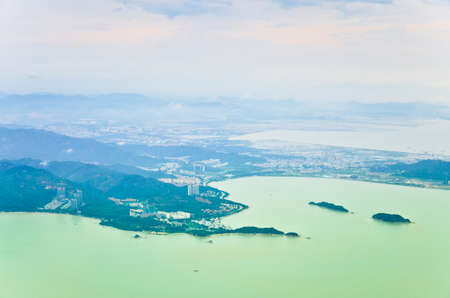 Landscape taken on the top during skycab ride on tropical Langkawi island in Malaysia. Beautiful nature of south east asia.