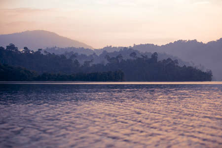 Sunrise on Cheow Lan Lake in Khao Sok National Park, Thailand