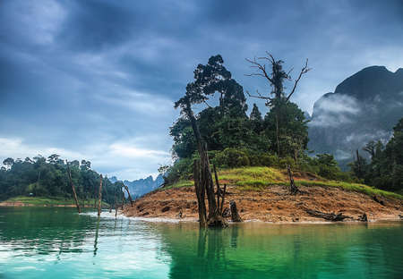 Cheow Lan Lake, also called Rjjaprabha Dam reservoir ,part of Khao Sok National Park in Thailand.