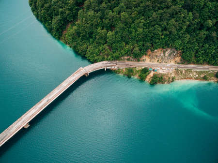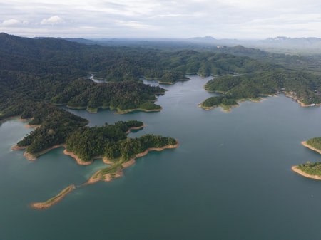 Aerial view of Ratchaprapha Dam in Surat Thani, Thailand