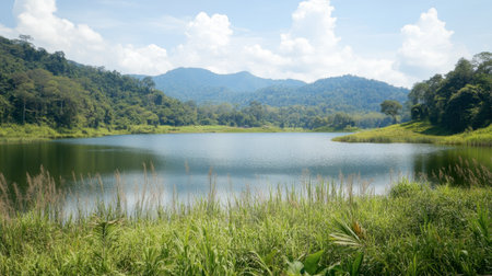 Scenery of man made lake at Sungai Selangor dam during midday.