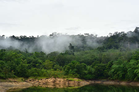 Morning mist over the lake in the morning at Khao Yai National Park, Thailand