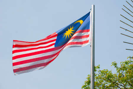 Hand waving Malaysia flag also known as Jalur Gemilang in conjunction with the Independence Day celebration or Merdeka Day.