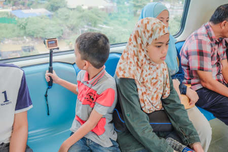 KUALA LUMPUR, MALAYSIA - December 31th, 2017: Passengers inside Mass Rapid Transit MRT train . MRT is Mass Rapid Transit Corporation Sdn Bhd, in Kuala Lumpur, M`alaysia.