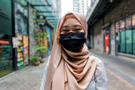 New Normal Concept: Fully vaccinated malay lady having a good time smile thru the face mask