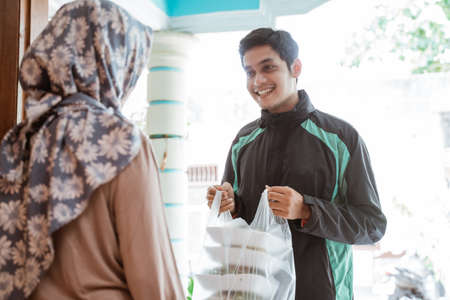 young Asian couple enjoying food and drinks during iftar at a coffee shop