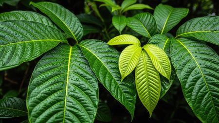Nature green leaf background, kratom tree grows on dark plant tree kratom leaves - Mitragyna speciosa korth medicinal plants