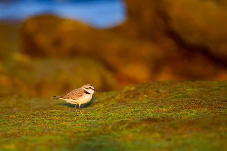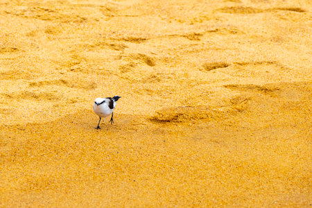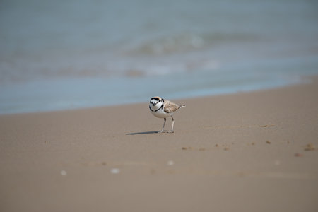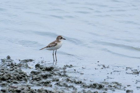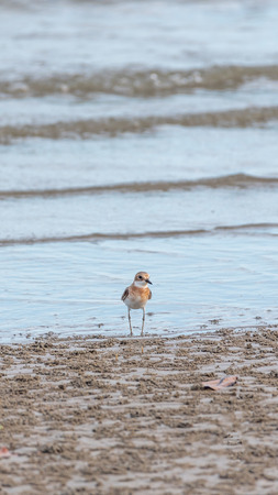 Bird (Greater sand plover, Charadrius leschenaultii) is a small wader in the plover family of birds at a sea in a nature wild