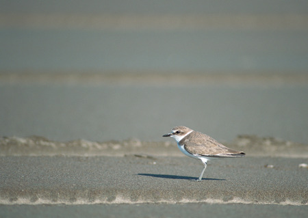 Kentish Plover or Charadrius alexandrinus on the beach in low tide.