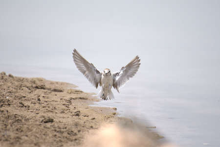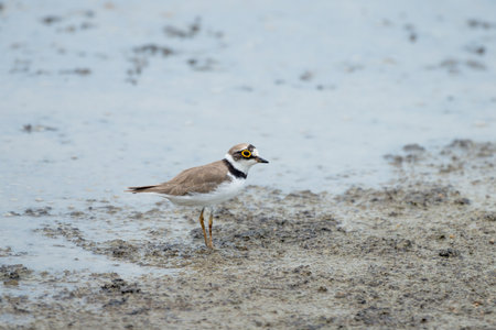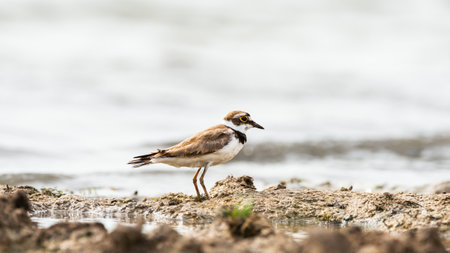 Little-ringed plover on the lake shore, small shorebird