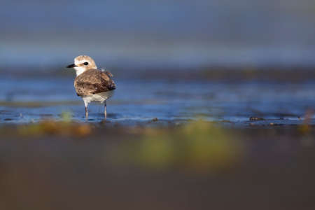 A Malaysian plover bird on a blurred background