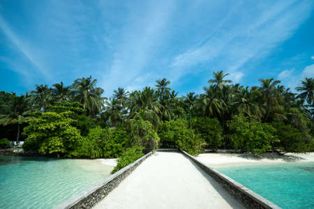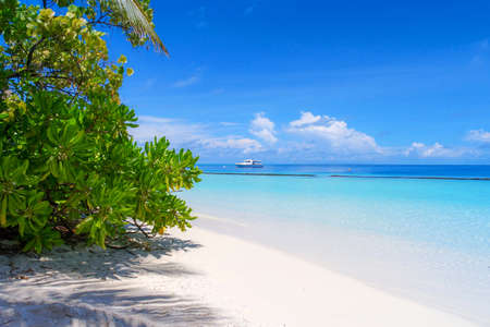 Wonderful blue sky and clouds on an island in Maldives, a beautiful seascape and white sand beach