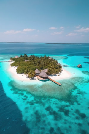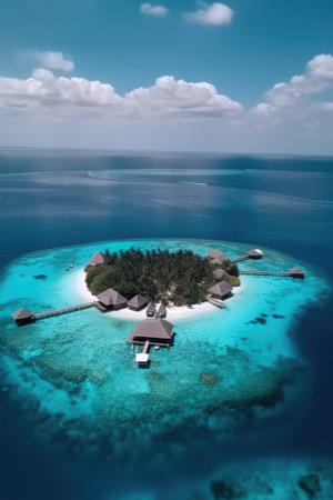 Generative AI : Aerial view of Ithaafushi Island a private island on Maldives archipelagos
