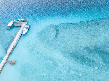 Aerial view of the docking dock of the boats and the reef around.